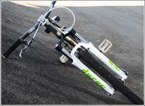 使用感: 前年モデルを半年程乗り込んでいたため、違和感無くなじむことができました。フォークの重量が2,500gと少々重たいですが、ストロークの動きがスムースなので、その反発を上手く利用すれば、重さはそれほど感じません。 最初から入っているスプリングは、ストリートやダートジャンプを乗り込んでいるライダーには柔らかすぎて不評ですが、ビギナーや柔らかめが好きなライダーには好評でした。 20mmのクイックリリースも非常に扱いやすく、ホイールの脱着がとても簡単です。バイクを裏返しに置いての脱着が、シャフトを抜く際に一切抵抗が無く、もっとも容易です。 |