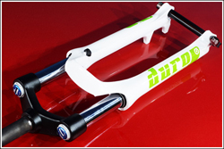 | 長所: ・価格が安い 価格が安いので、10万円以下のエントリーバイクに付いている廉価版サスフォークからの買い替えを考えているライダーの最初の候補になり易い。 ・剛性が高い 簡単に壊れそうもないので、派手に使っても大丈夫そうという安心感がある。 ・グラフィックのデザインが良い・メンテナンス〜カスタマイズが容易 オーソドックスな機構のため、バラしてのメンテナンスが容易であることや、AXONやEPICONなどエアサスにDUROのアウターレッグを簡単に入れ替えることができるなど、カスタマイズが容易である。 またクイックリリースのシャフト取り付けのシステムもシンプルなため、シャフトをカスタムしてのグラインドペグの装着も可能となっています。 |