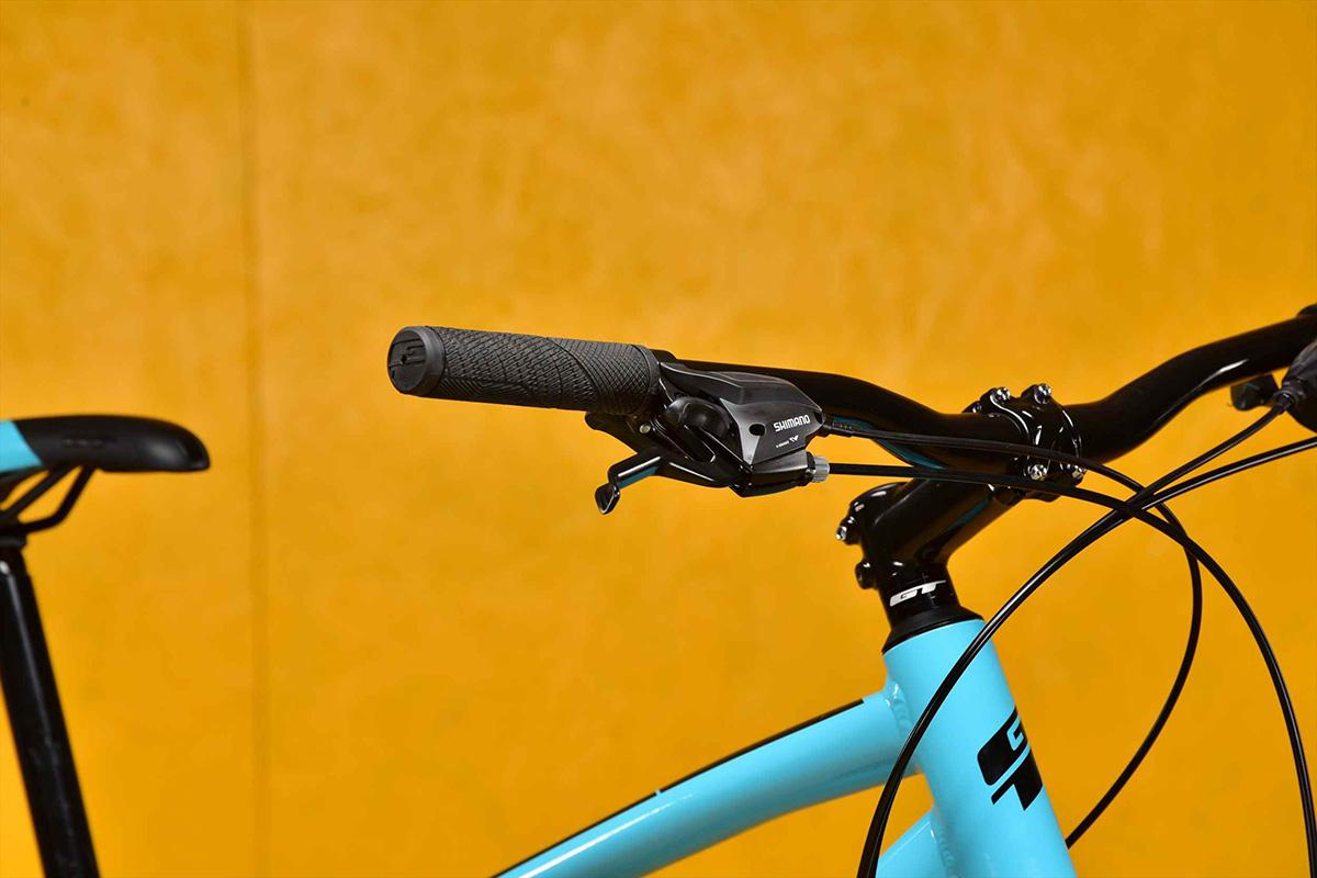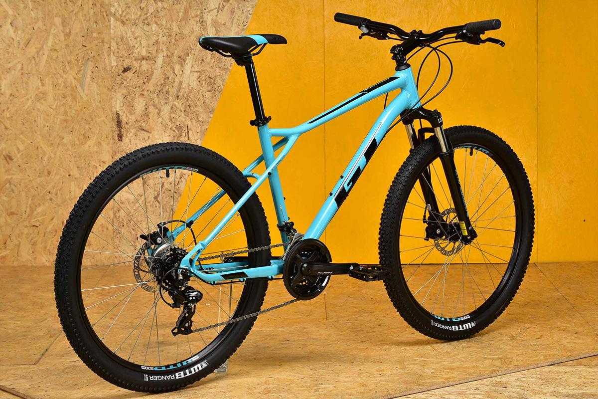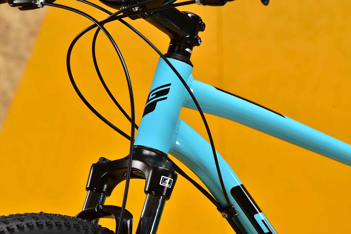 MTBのトップブランド、GTのフレームはとにかく頑丈だ。ラフな路面に負けるような素材や加工ではない。さらに負荷のかかる部分は太く・厚く、負荷の小さな部分は薄く・軽く作る設計で、軽さと強さを両立させている。トップチューブは大きなスローピングと軽いカーブのおかげで、街中でもトレイルでも足つきが良く、フレンドリーな乗り心地を実現した。 |