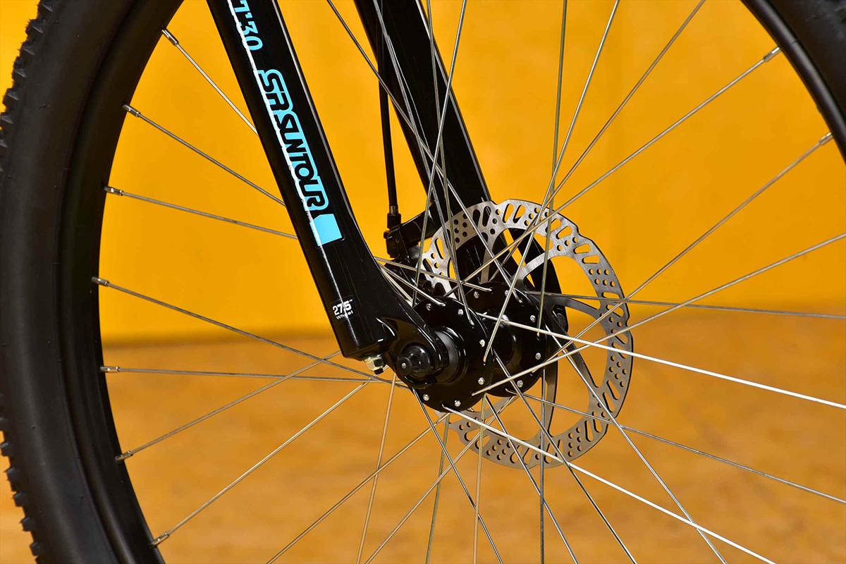 オフロードはもちろんの事、街中でもアスファルトの段差や石畳を快適にするフロントサスペンションフォークを採用。ハンドルにかかる振動・衝撃を大きく吸収し、疲労を軽減するだけではなく、安定した操縦も可能にしている。 |