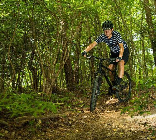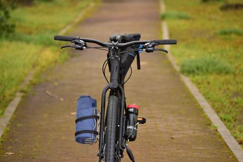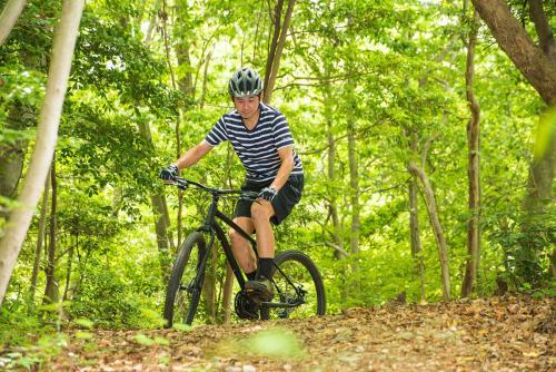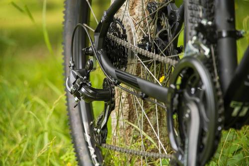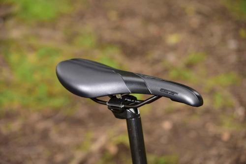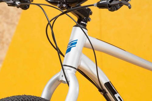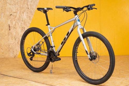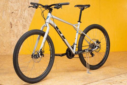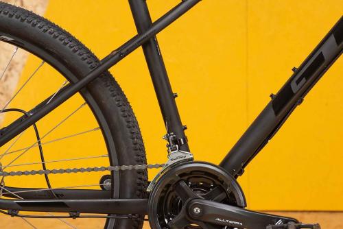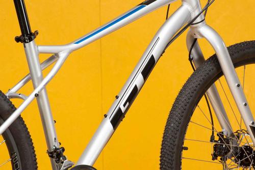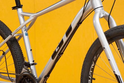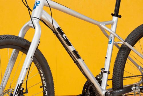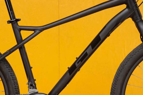 MTBのトップブランド、GTのフレームはとにかく頑丈だ。ラフな路面に負けるような素材や加工ではない。さらに負荷のかかる部分は太く・厚く、負荷の小さな部分は薄く・軽く作る設計で、軽さと強さを両立させている。トップチューブは大きなスローピングと軽いカーブのおかげで、街中でもトレイルでも足つきが良く、フレンドリーな乗り心地を実現した。