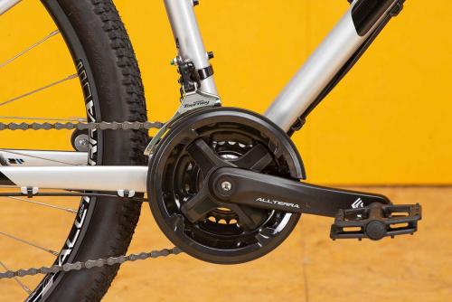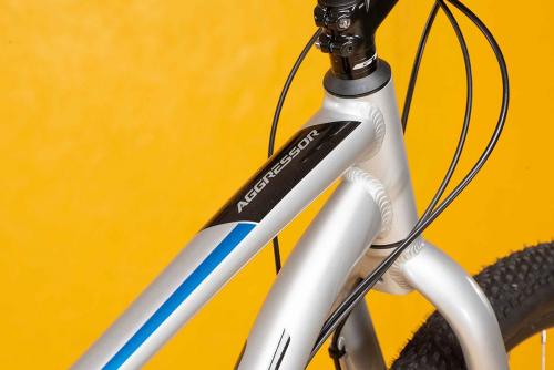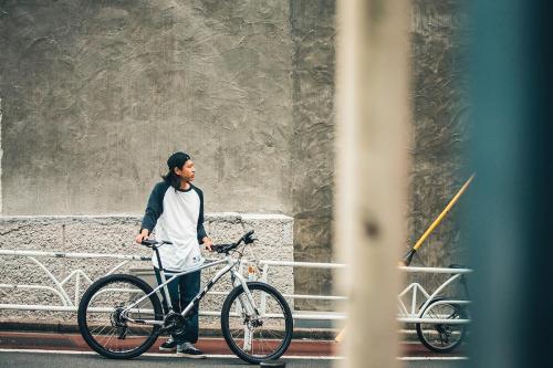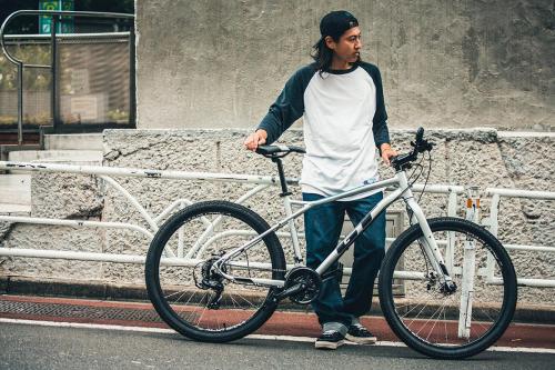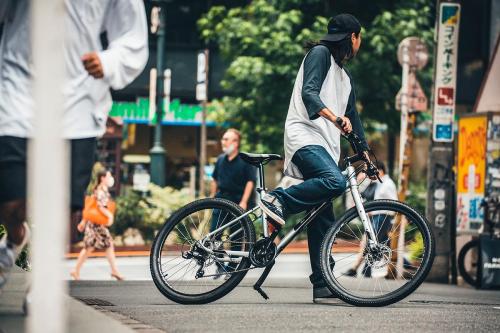 アグレッサー・リジッドは、軽量・堅牢なリジッド(固定式)フロントフォークを採用した本格派MTBだ。27.5″のタイヤ、アルミ製のトリプルトライアングルフレーム、ディスクブレーキは、オフロードでのトレイルライドにも対応する堅牢さだ。もちろん、シティユースでの乗り心地も抜群。岩や土の似合うシルエットは、街中でもその存在感を発揮する。(写真のキックスタンドは別売りです)