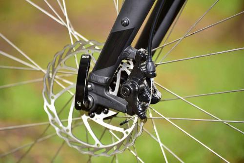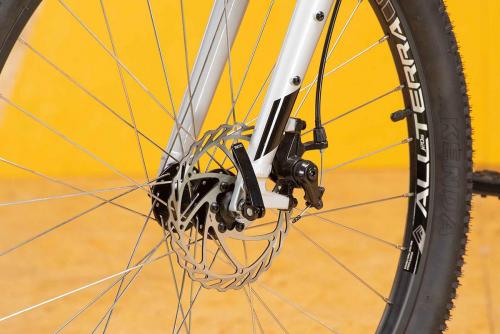 制動用ディスクをパッドで挟み込むディスクブレーキを採用。汚れや雨による影響を受けにくく、安定した減速のコントロールができる。アグレッサーエキスパートには油圧式、その他のグレードにはワイヤー式を採用している。