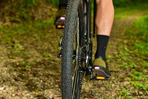現在、29″と並んでMTBの世界的トレンドである27.5″のホイール・タイヤを装着。大きすぎないサイズは取り回しに優れ、加速にも優れている。29″と比較すれば軽くなるために、登りを多くこなすコースにおいては優位とされている。