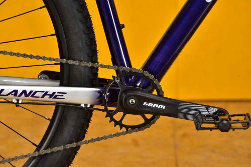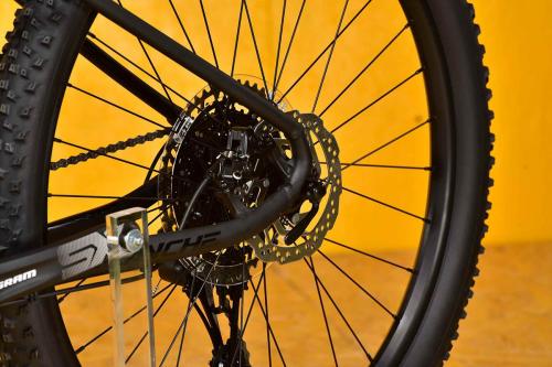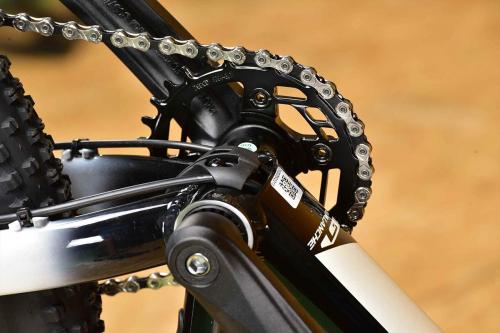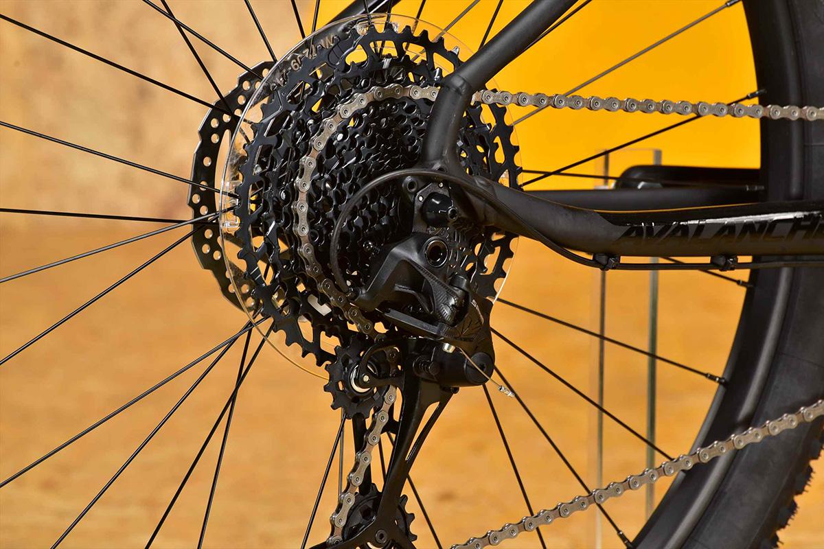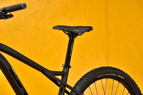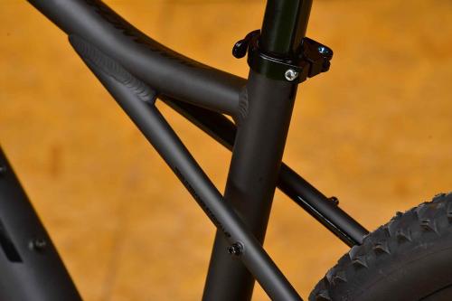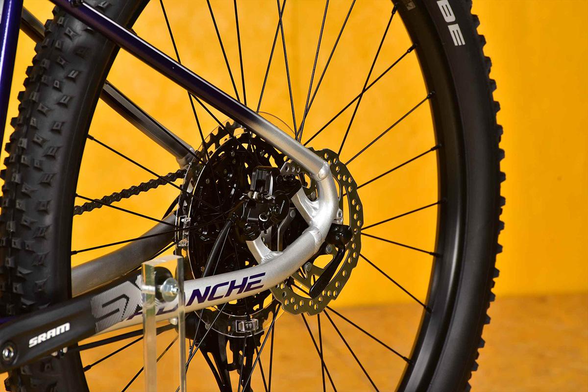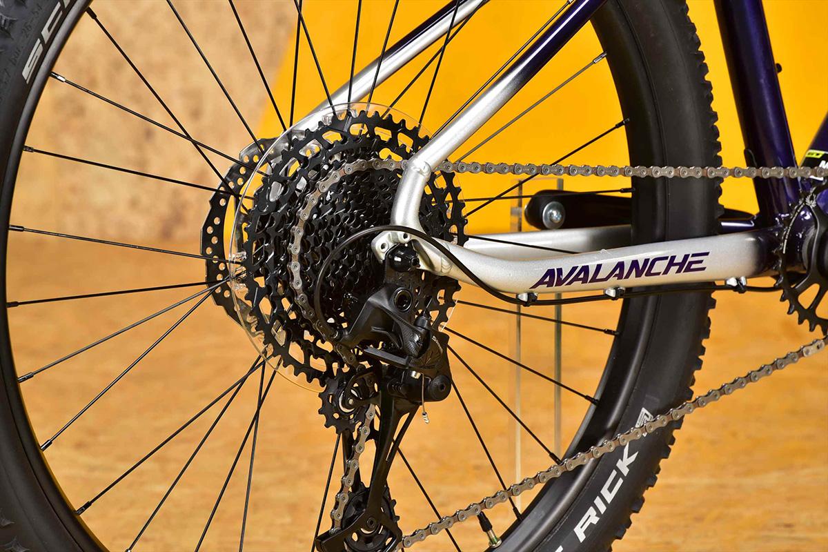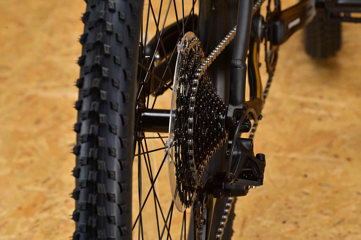 従来から6mmワイド化したBOOSTリアエンドを採用。セミファットバイクとしてラインアップしていたパンテラと同じ2.8″のセミファットタイヤを飲み込むクリアランスを実現した。さらに、29″や27.5″に大径化したことで剛性を確保することが難しくなっているホイールも、ハブのワイド化により構造体として高剛性化を達成している。
