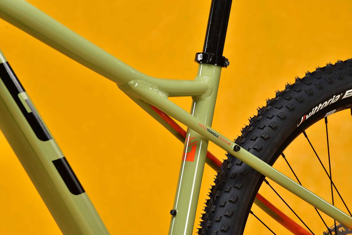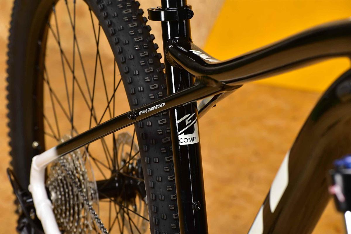 シートステーとシートチューブの溶接を廃した新しいトリプルトライアングル。驚くほどしなるシートステーにより、リアタイヤは路面に食いつき、ライダーへの衝撃は吸収される。テクノロジーの進歩により従来の高い強度と剛性は維持することに成功。このテクノロジーにより、快適性は従来デザインから30%、通常のダイヤモンドフレームに対して50%向上した。