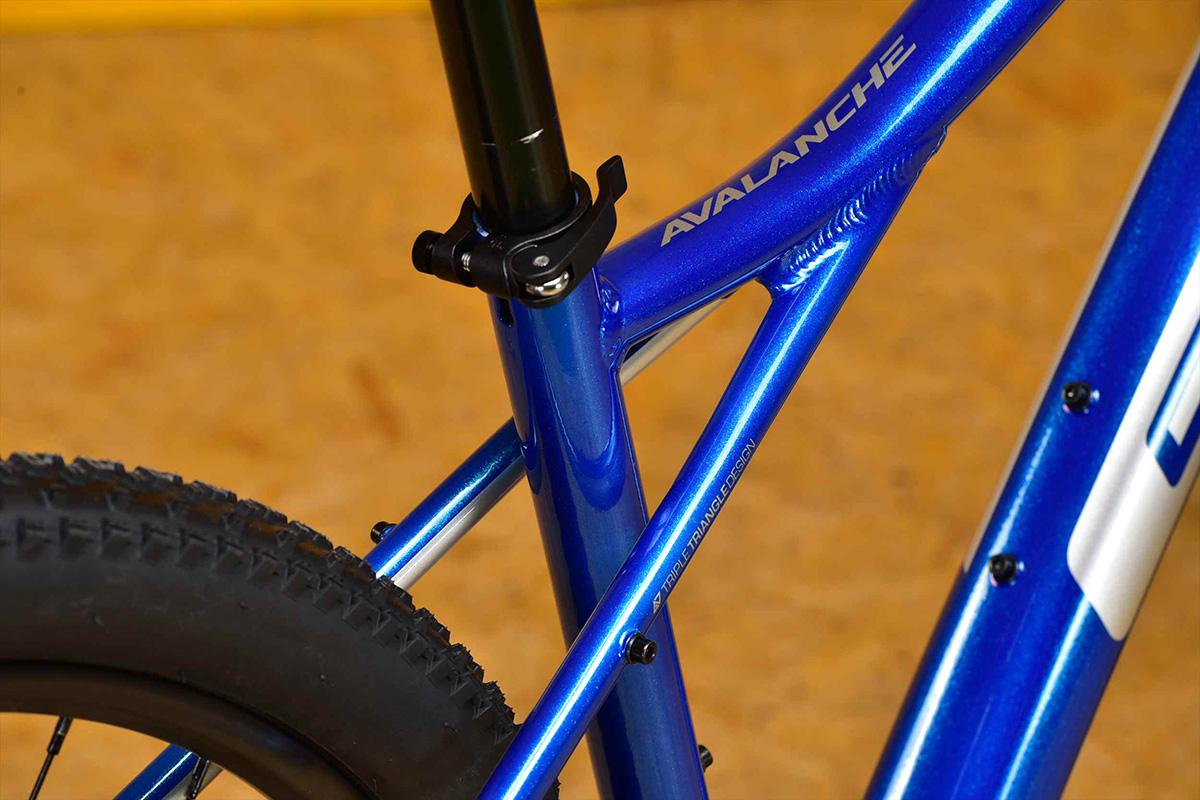 長い GT の歴史の中でも最も息の長い MTB がアバランチェ。名車ザスカーの弟分と言われることが、MTB の醍醐味を味わいつくすために十分以上の性能を持つモデルであることを証明している。そのアバランチェがフルモデルチェンジ。新しい「フローティングステー・トリプルトライアングル」がしなやかなフレームを生み出し、路面を舐めるリアタイヤと、最高に「Fun」なライディングエクスペリエンスをライダーは得ることになる。しかもリアエンドはBOOST 141mm QRにワイド化し、ライダーは全幅の信頼をアバランチェに置くことになるだろう。高品質アルミニウムフレームとザスカー譲りのテクノロジーが、真のマウンテンバイカーへの道となる。