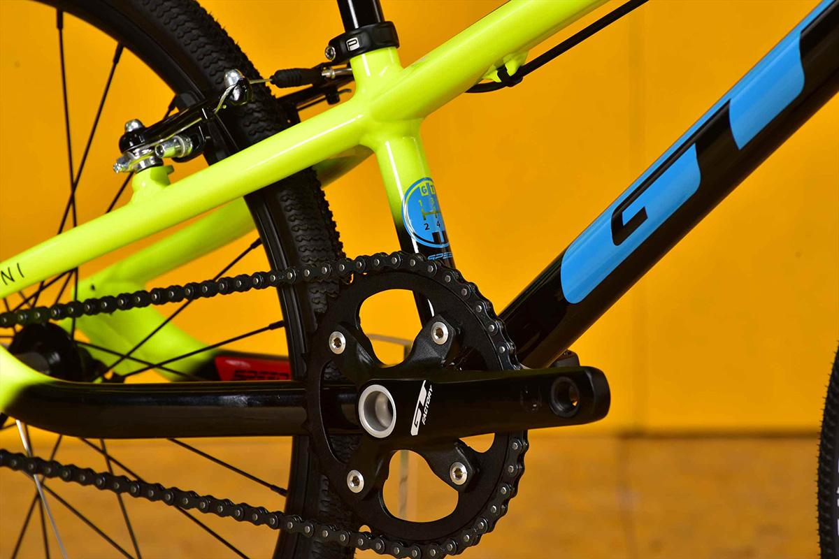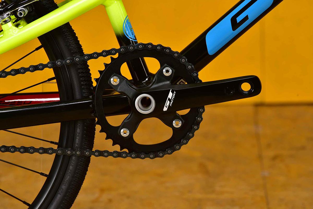 クランクはモデルの適応身長に対して最適なクランク長とギアをアセンブル。成長期の体に無理なく効率よいペダリングを実現。 |