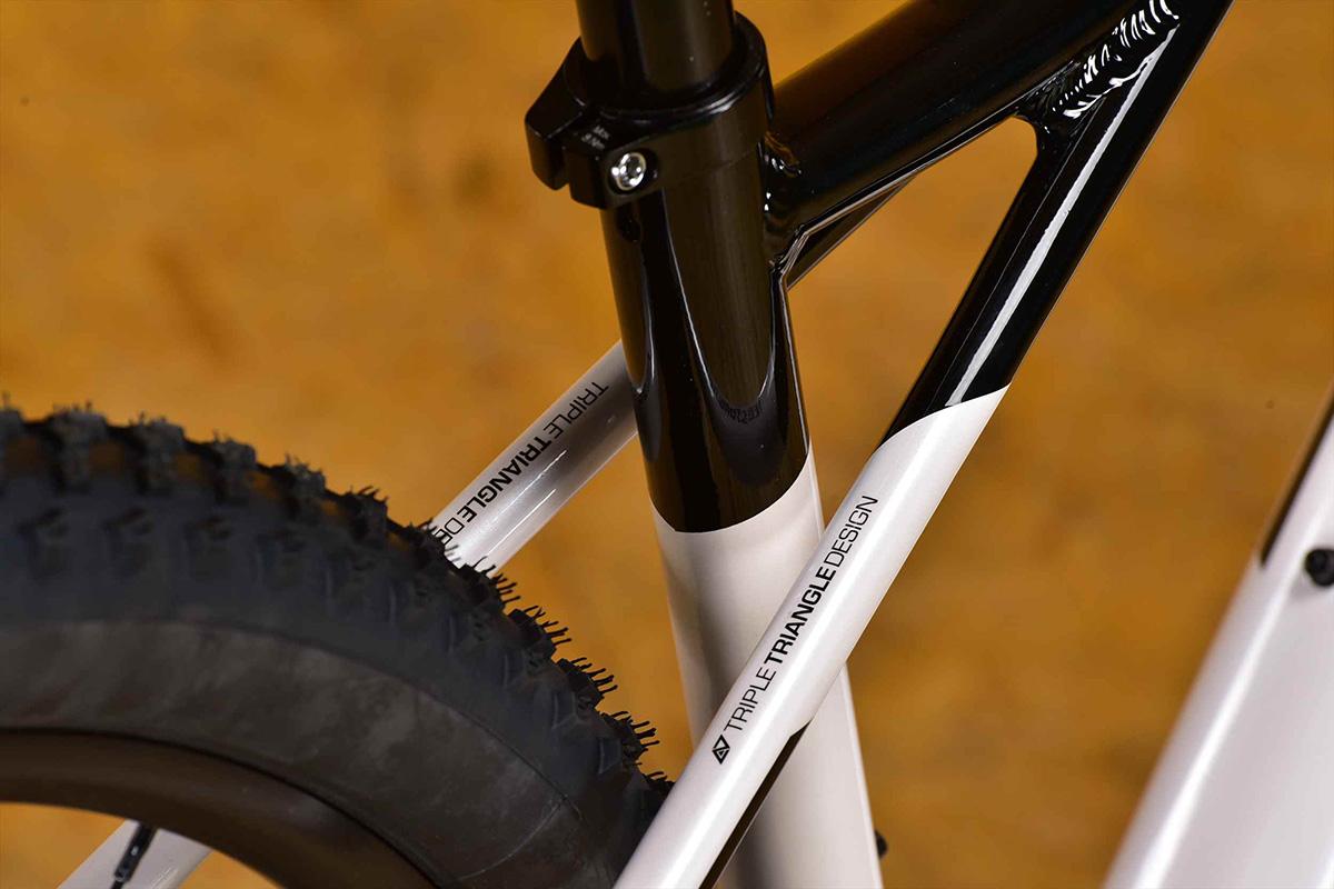 Force Optimized Carbon(F.O.C.)フレームは、フレームにかかる負荷を分析し、大きな負荷がかかる部分は構造材を厚く、負荷の小さな部分では逆に薄くすることで、マウンテンバイクのフレームとして理想の剛性・堅牢性・重量を実現している。トリプルトライアングル設計はカーボンフレームにも継承され、XCバイクに必要な固さ・しなやかさ・軽さを高次元でバランスしている。 |