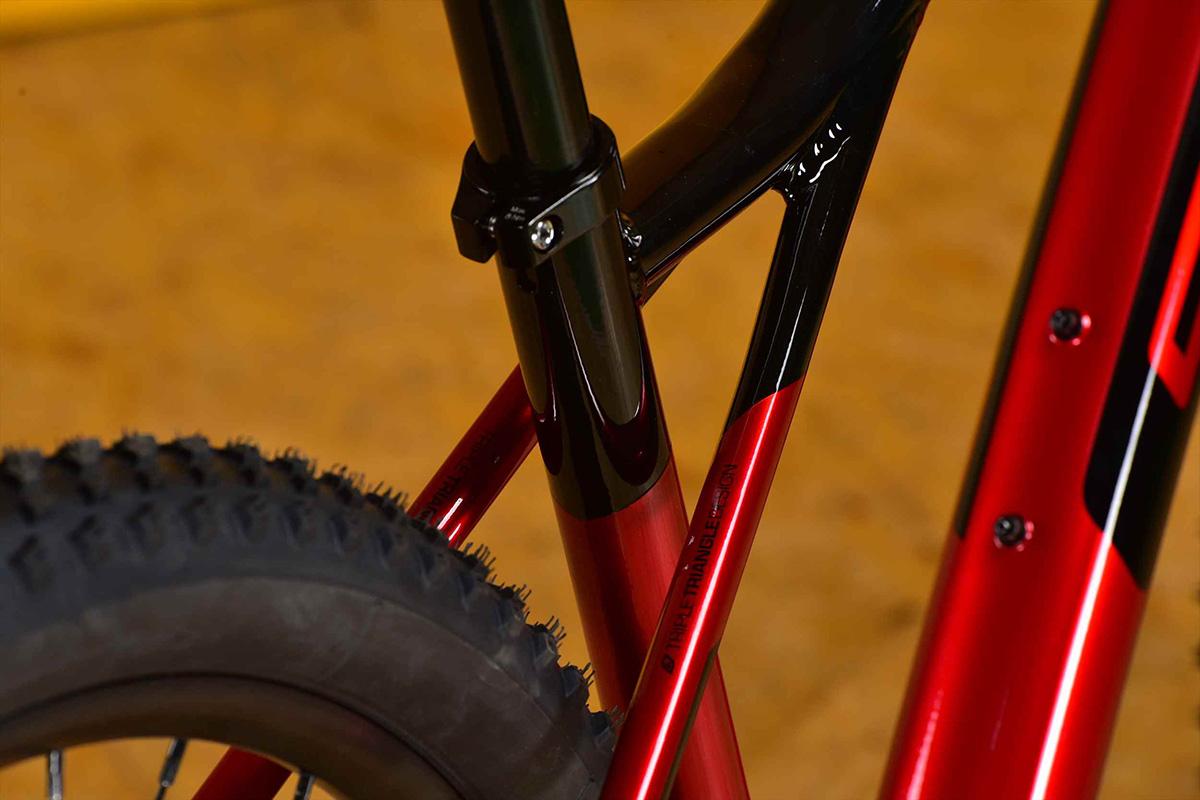 ZaskarはGTの伝統そのものと言えるビッグネームだ。そしてそれは常に進化し続けている。新しいザスカーアロイシリーズは、シートステーとシートチューブを溶接しない、新しいトリプルトライアングルフレームを採用した。設計と溶接の技術の向上により、溶接のポイントを減らしたとしても十分な強度が担保できること、より路面追従性が高く、快適なバイクを求めるライダーが多くなってきたことが新しいトリプルトライアングルフレームを採用した理由だ。 |