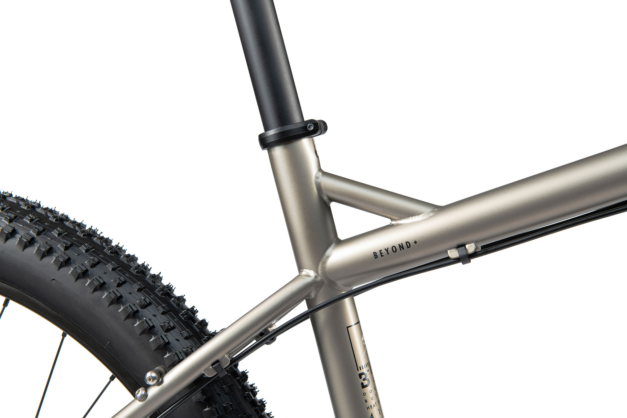 「BEYOND + (ビヨンド・プラス)」は、舗装路を走り、グラベルを走り、さらにはトレイルをも乗り越えつつ、目的地を目指すためのクロスオーバー・ツーリング・バイクだ。路面追従性に優れたフレーム、1×12のドライブ、極太タイヤに対応するクリアランスなどの最新ハードテイルMTB、ファットバイクのテクノロジーに加え、フレームにケージマウント、ラックマウントを多数装備、アルミフォークを組み合わせることでツーリングバイクとしての性能を強化。自らの限界を迎えるためにこれほど適した相棒はないだろう。 |