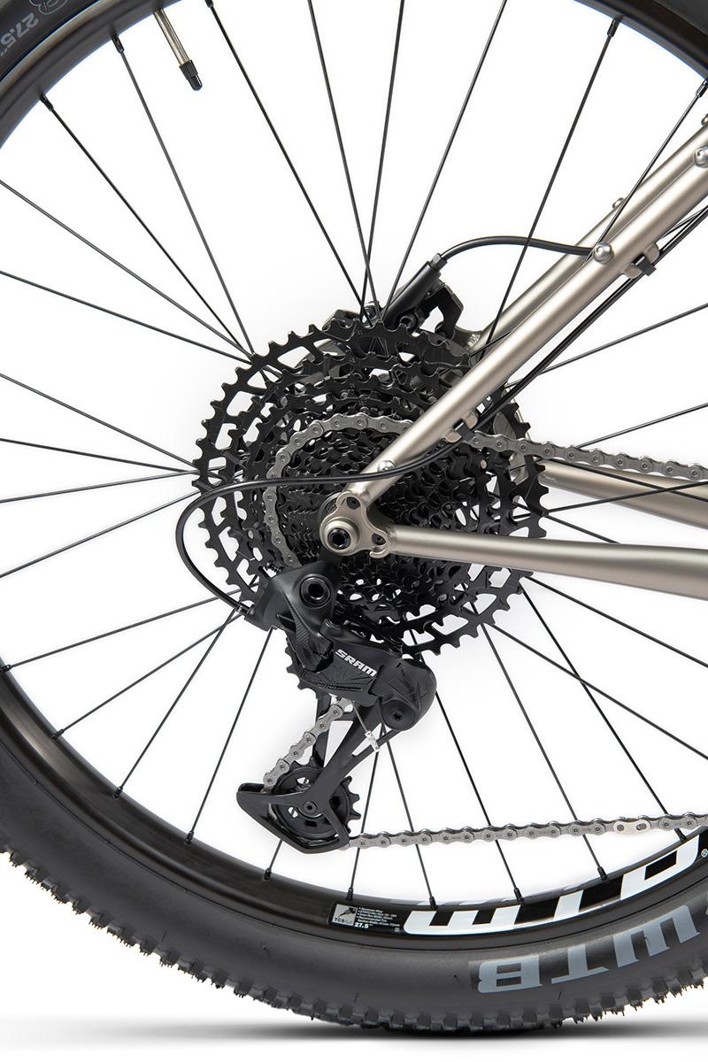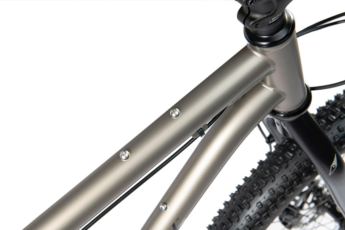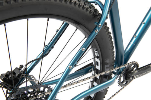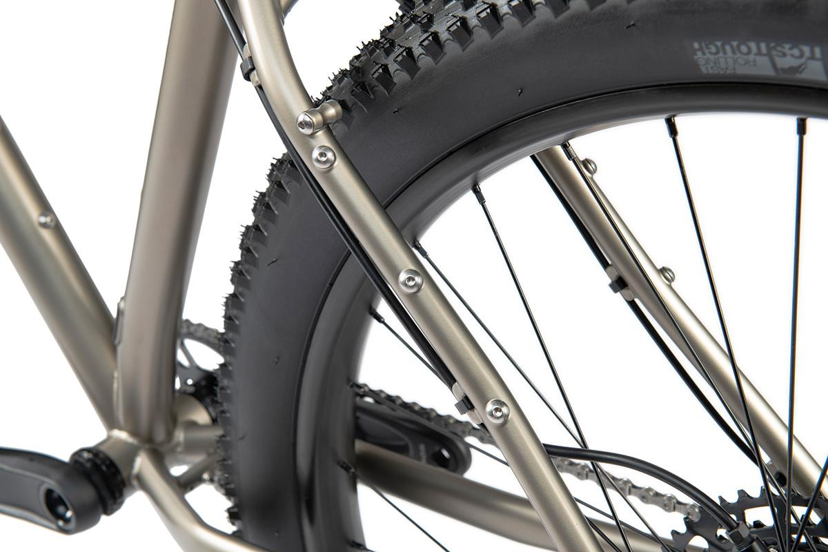 27.5″, 29″のどちらも3″、いわゆるプラスサイズまでのタイヤが装着可能なクリアランスを確保している。太いタイヤはエアボリュームが大きく、路面の追従性に優れるとともにパンクのリスクも低い。アドベンチャーライドに向いている共に、舗装路、特に下り坂では絶大な安心感を提供する。 |