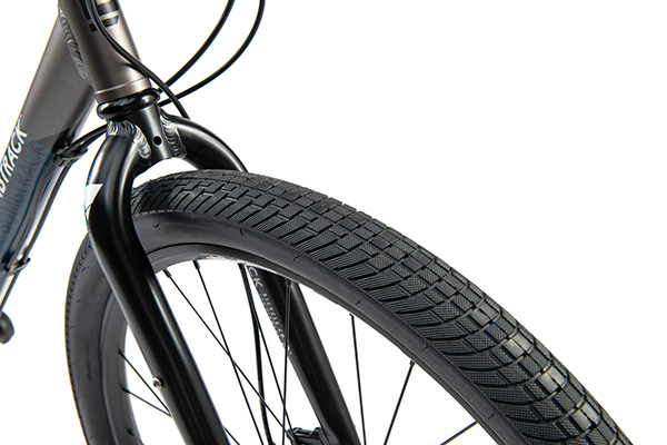 街を駆けるシティ・クロスバイクに新しい価値を提供するのが「MUNROE(マンロー)」だ。650B×45Cという、MTB並の極太タイヤをシティ向けに贅沢に装着している。アスファルトの割れ目、路肩のクレーチング、歩道との段差など、街には幅細タイヤの天敵が多数存在している。45C極太タイヤは、それらをことごとく「初めから存在しなかったように」やり過ごしてくれることだろう。別売りの700Cホイールに換装して、身軽さを手に入れることもライダーの意識次第で可能となる。 |