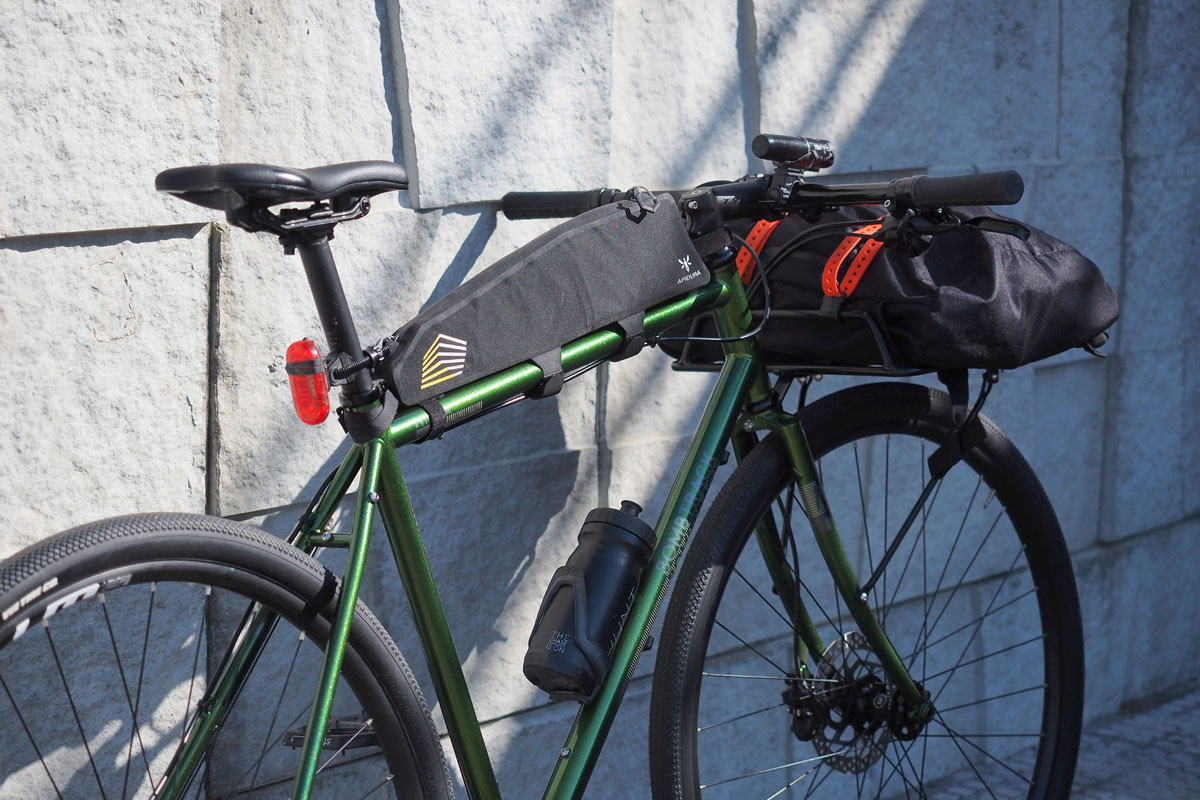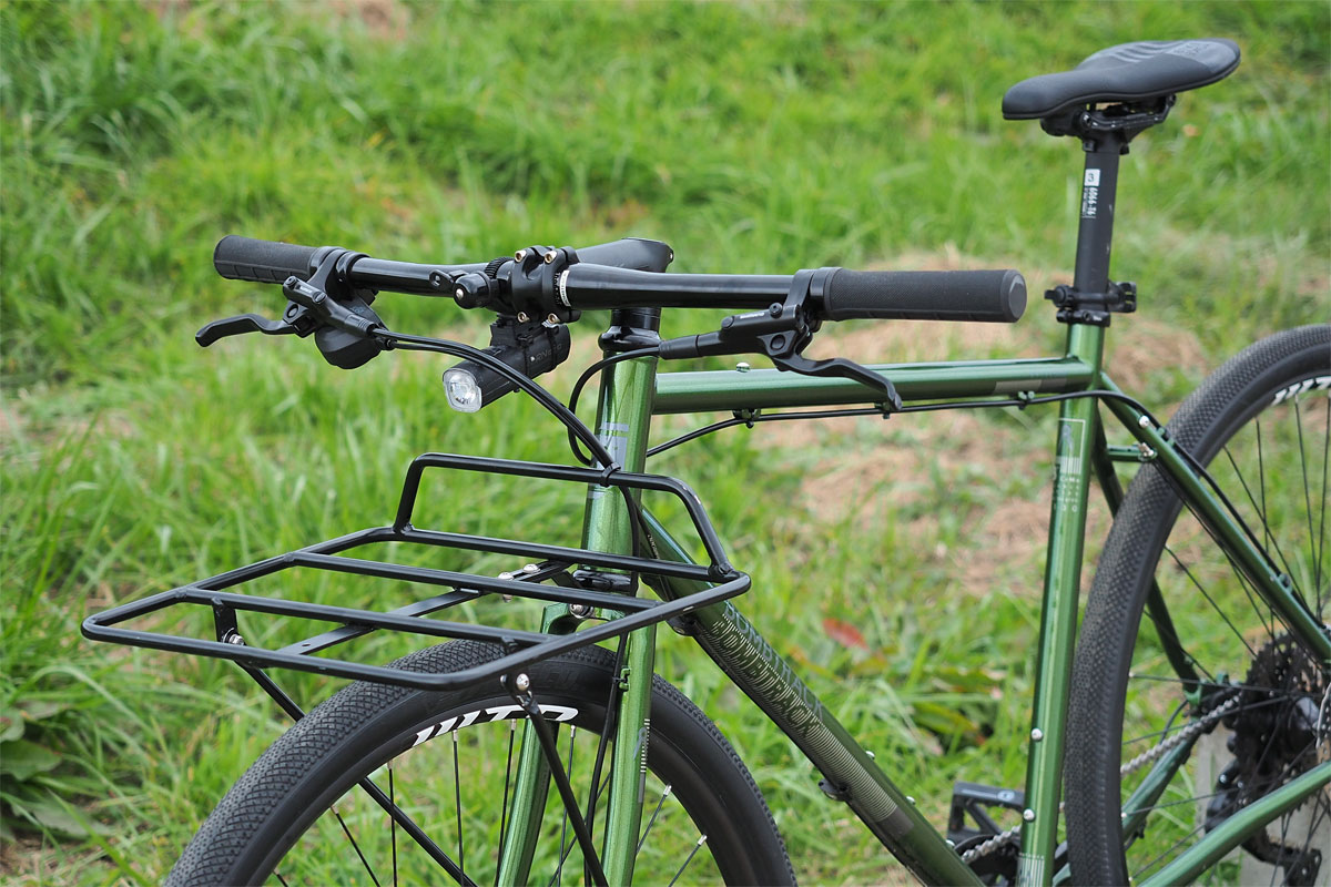 Arise Gearedは、マルチパーパスなグラベルバイク。目を引くのは、標準装備されたフロントラックだろう。専用設計のラックは、流石は収まりが良く、相性も抜群だ。