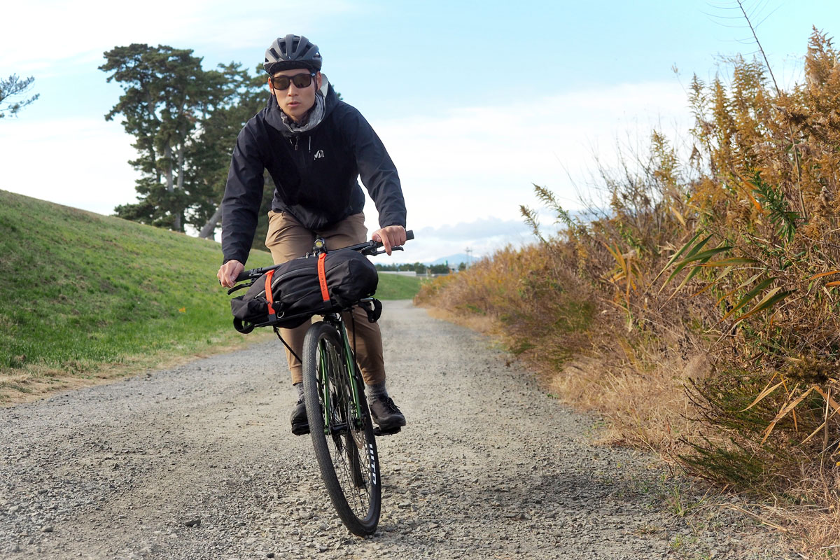 胸の高鳴りに身を任せ、意気揚々と砂利道へ。堅牢なArise Gearedは、週末の遊び程度ではびくともしない。フレームの安定感に支えられ、僕はひたすら未舗装路を突き進むのみだ。