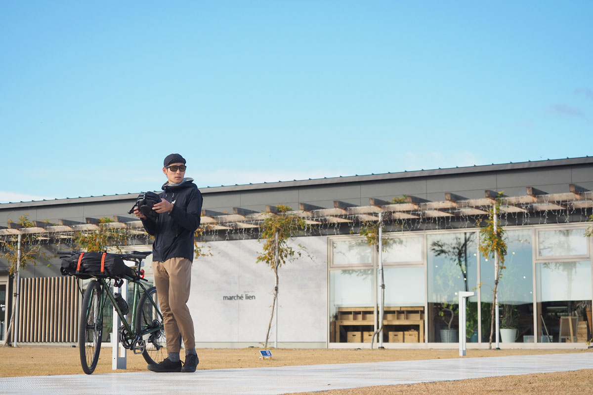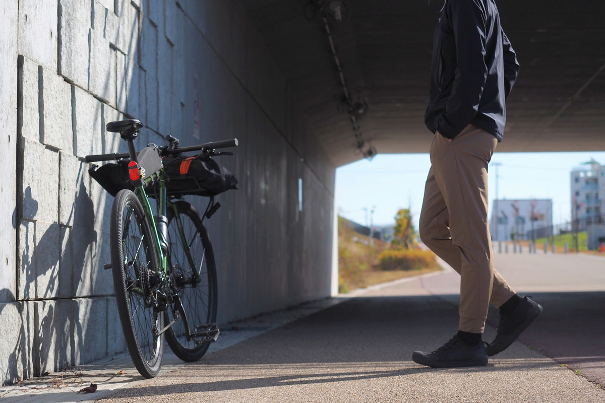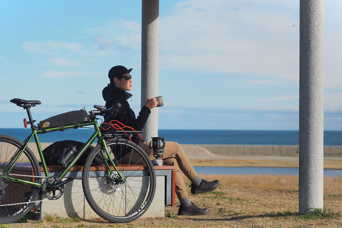 ある休日、ふらりとコーヒーセットを持って家を出た。パッキングは、リュックに道具を詰め込んで、ラックに括りつけるだけ。このシンプルさは、出発のハードルを下げて遊びに集中させてくれる。