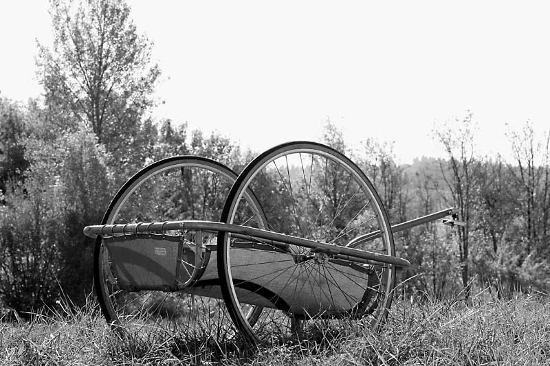 自動車を使わない生活を送ると決めたアランには、自転車で商品となるカバンと、彼らの幼い娘を土曜市場まで運ぶ方法が必要でした。彼は古いブランコのパーツを利用して最初のバーレートレーラーを作りました。地元のサイクリスト達と自転車ショップの人たちは彼のトレーラーに気づきはじめ、それから注文が入るまでにそう長い時間は掛かりませんでした。