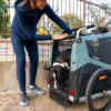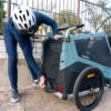 バーレー独自のフレックスコネクターで、自転車が倒れてもトレーラーは倒れません。