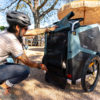 手押し用の前ホイールと調整可能なハンドルバーを備え、手押しカートとしても使えます。