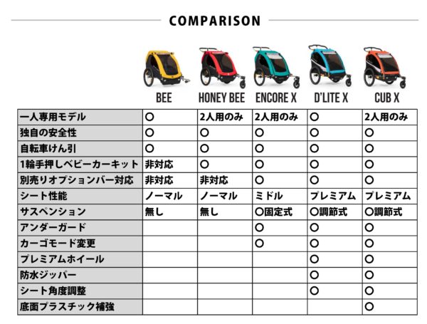 バーレー・自転車用ベビーカー共通の特⾧