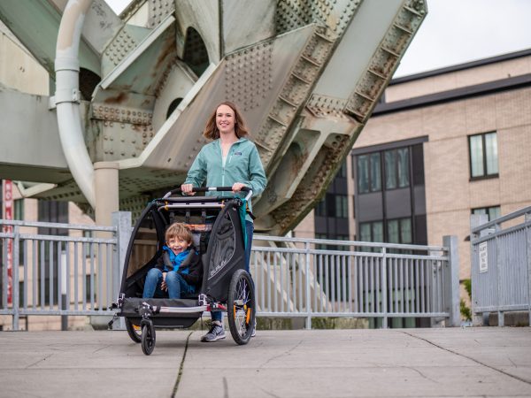 自転車の転倒時にもトレーラーを水平に保つフレキシブル接続