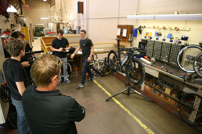 ![]() FELT ブランドの創業当時は素材、パイプ、ジオメトリー、スペックまで全てをやっていましたが、今は3年、10年後を見据えたバイクのコンセプトを作ることが最も重要な役割です。 コンセプトをベースにロードバイク、トライアスロンバイクなどをそれぞれ担当するプロダクトマネージャーが具体的な開発を行っていきます。 コンセプト段階ではまだ誰も挑戦したことの無い進化をテクノロジーの進歩とシンクロさせながら生み出していくのです。 いくら良いアイデアであっても、製造、量産する技術が無ければ空想にすぎません。 さらに、革新の対象はフレームだけにとどまりません、ブレーキやタイヤなど、パフォーマンスを高めるためのハードウェア全てが対象です。 今発売しているトライアスロンモデルの IA もフレームだけでなく、タイヤも空気抵抗を減らせるトレッドをタイヤメーカーと共同で開発しました。 アメリカの研究拠点のすぐ近くに風洞実験施設があり、多くの自転車ブランドも利用しています。ここ数年はエアロ性能の研究に没頭していたので、風洞実験施設の利用時間は FELT が最長です。家族に第二の家と呼ばれています。(笑) |