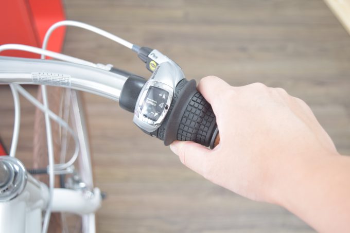 変速時には、ブレーキレバーごと内側に押し込んだり、シフトレバーのみ内側へ押し込んだりすることによって、ギアを変えることが出来ます。