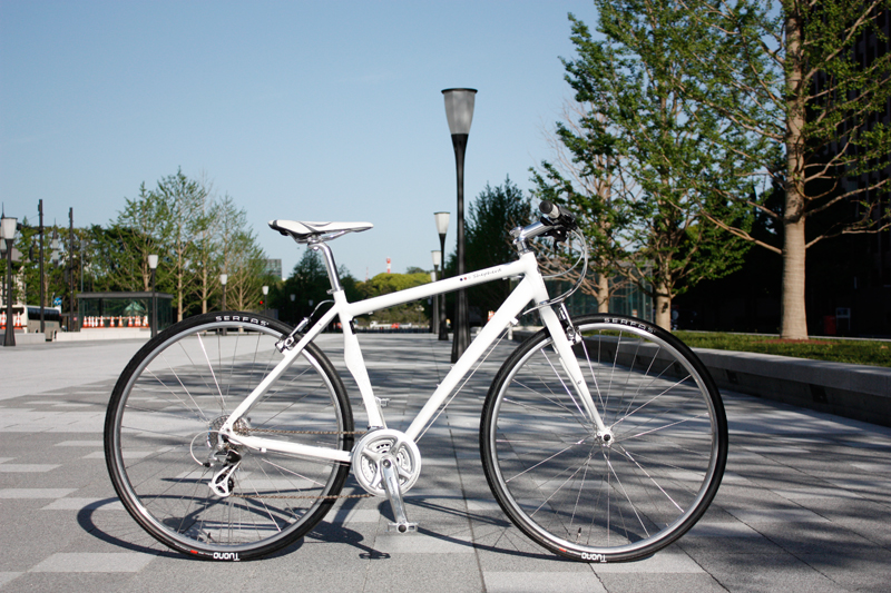 適度なクッション性と抵抗が少なくスピードの出る32mm幅のスリックタイヤ。 | ![]() |