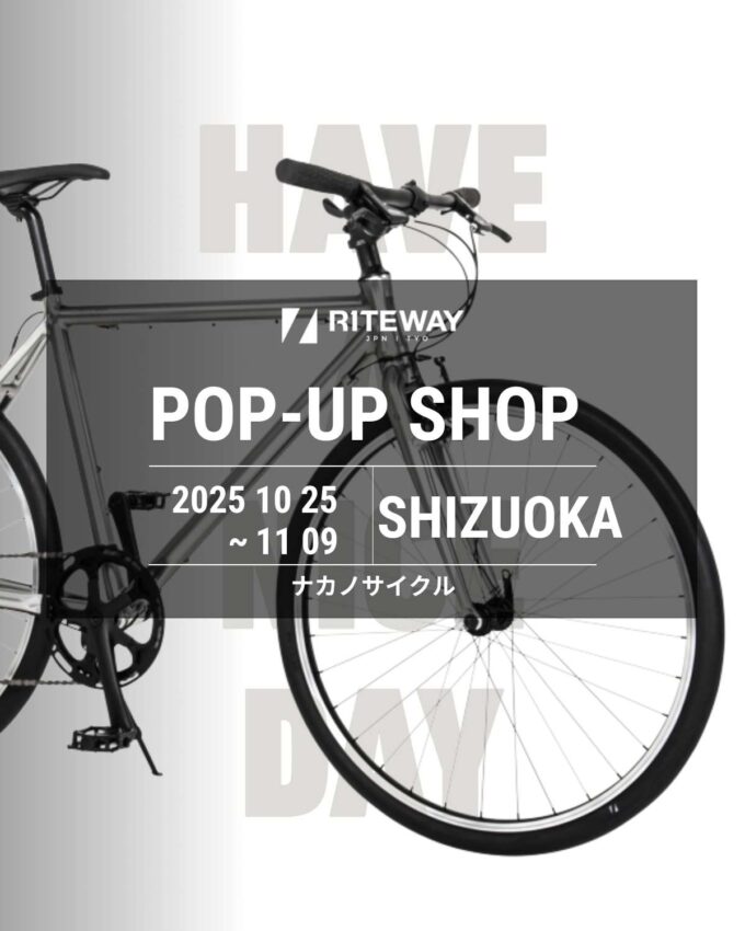 静岡県浜松市に位置する「ナカノサイクル」様にて、RITEWAYの製品を実際に見て、触れていただけるポップアップショップイベントが開催されます。