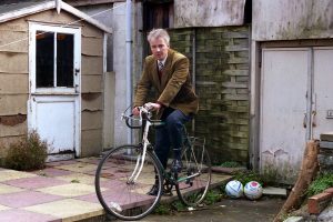 クラシカルな自転車にマッチした白T&スキニーデニムのコーディネート。上下ともにタイトなサイズ感をセレクトし、革靴に合わせることでグンと大人っぽい印象に。乗りやすさ・実用性にも長けた参考にしやすいおしゃれでシンプルな組み合わせ。