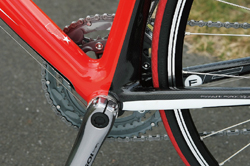 買いやすくなった 2010年モデルのフェルトロードラインナップは、フレームの素材や構造は実績ある従来モデルを継続している。Fシリーズは、レースでの使用を前提としたフレーム設計がなされており、短めのヘッドチューブによりハンドル位置を低くできることが特徴となっている。最近では、「レース用」とうたわれるフレームでも、ヘッドチューブはやや長めに設定されることが増えてきている中で、「潔さ」を守っている存在と言える。 大きく変わったのは、カラーリングと価格だ。 フレームカラーが鮮やかなレッドになっただけでなく、フェルトオリジナルのステム、シートポスト、サドルにも大胆なグラフィックが用いられ、フレームとのコーディネイトが図られている。さらに、シフト用アウターの端末に装着されるアウターカップまで赤い表面処理が施されている。ここまで徹底できるということは、コンポーネント以外の部品に自社ブランドのものを使用し、コストを抑えながらも満足できる品質を確保していることを表している。 そのため、価格は09年モデルに対して大幅に下がり、20万円をわずかに超えるだけ。買いやすくなったところがド真ん中だ。(TEXT 細沼達男) |