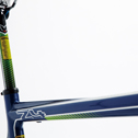 フェルトでモデル名に「Z」がつくZシリーズは、快適系ロードの先駆け的存在。ヘッドチューブが長め、トップチューブが短めのフレーム設計になっている。このおかげでハンドル位置を高め、近めにできる。上半身の前傾を強めなくても済むので、ゆったりとリラックスして長距離を走るのに