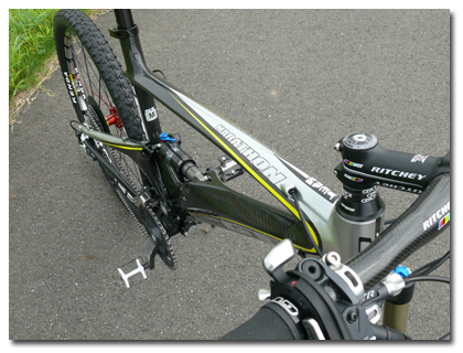 2010年マラソンシリーズはアルミモデルをセンサーにしてしまったためカーボンモデルのみとなりよりXCマラソンレース用という方向性がはっきりしました。走行感は圧倒的に軽く平地でも登りでもフルサスらしからぬ加速を見せます。ストロークは100mmですがカーボン素材が持つ振動減衰特性により細かな振動は吸収されてしまうので乗り心地も快適です。 |