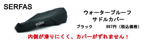 サーファスからウォータープルーフのサドルに取り付ける、MTBやクロスバイク用防水カバーが出ました。十分な伸縮性!997円というお手ごろ価格!・・・・・続きはタイトルをクリック! ">