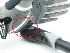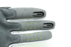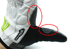 長く使える安心設計 オフロードライディングで破れやほつれの 原因になりやすい親指と人差し指の間を 強化人工レザーで補強。 長期間使える安心設計。