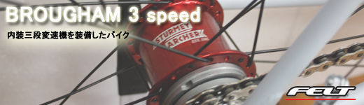 BROUGHAMにSturmey Archer製 内装3段変速機を装備したバイク『ブルーアム 3スピード』のご紹介。過剰な装備をそぎ落し、スポーツバイクの原点を求めたシンプルなデザイン・・・・・続きはタイトルをクリック! ">
