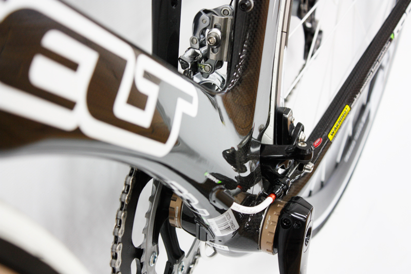 シフトワイヤー、Rブレーキワイヤーをフレーム内に通して空気抵抗を軽減