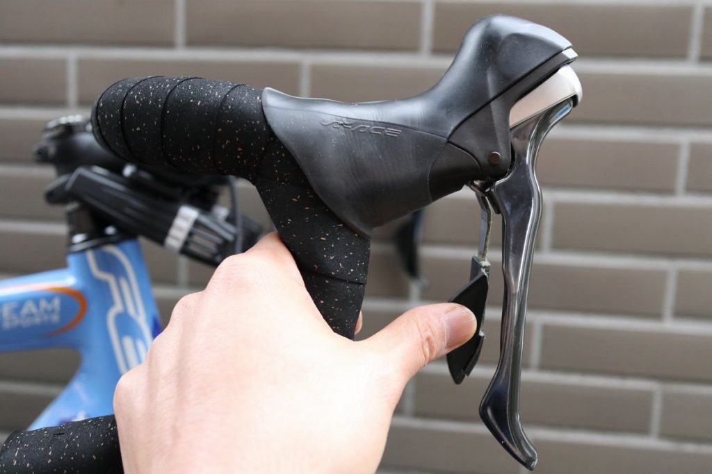 一方、シフトダウンは乗り手が手の力を自由に変えて、リア側シフターの変速レバーを操作できます。