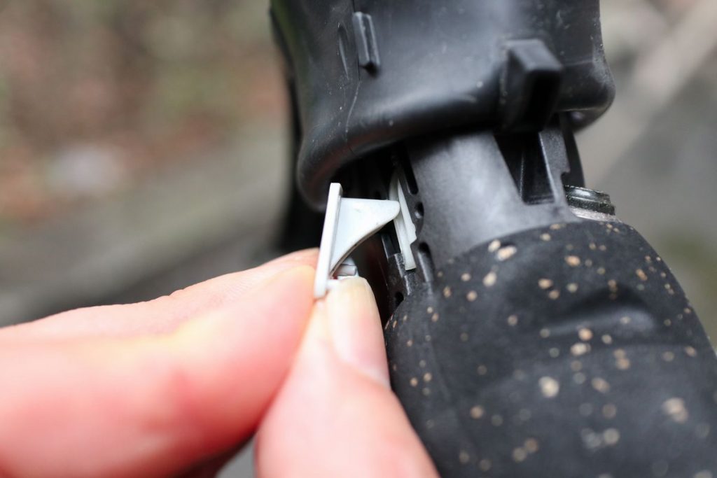 そして、新しいシフトワイヤーの後端にあるタイコ部分をリア側シフター内部にあるタイコ受け部分に差し込みます。