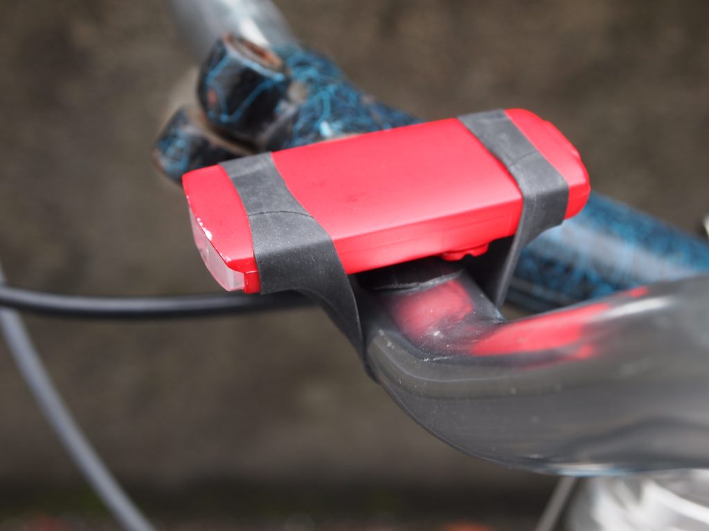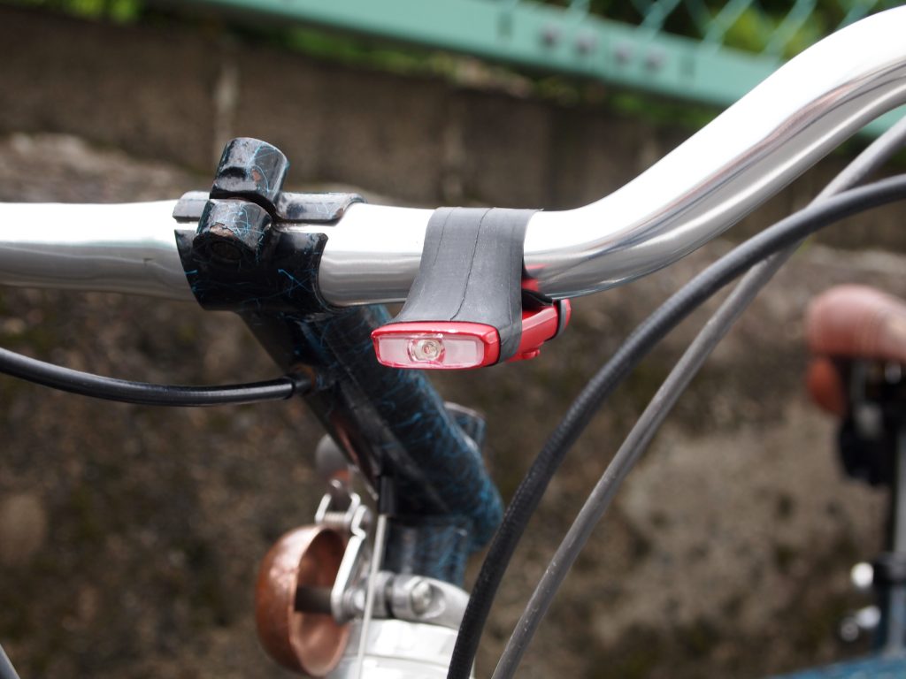ハンドルの上に付けるように設計されているライトは、ハンドル下につけるとライトも逆さまになってしまいます。