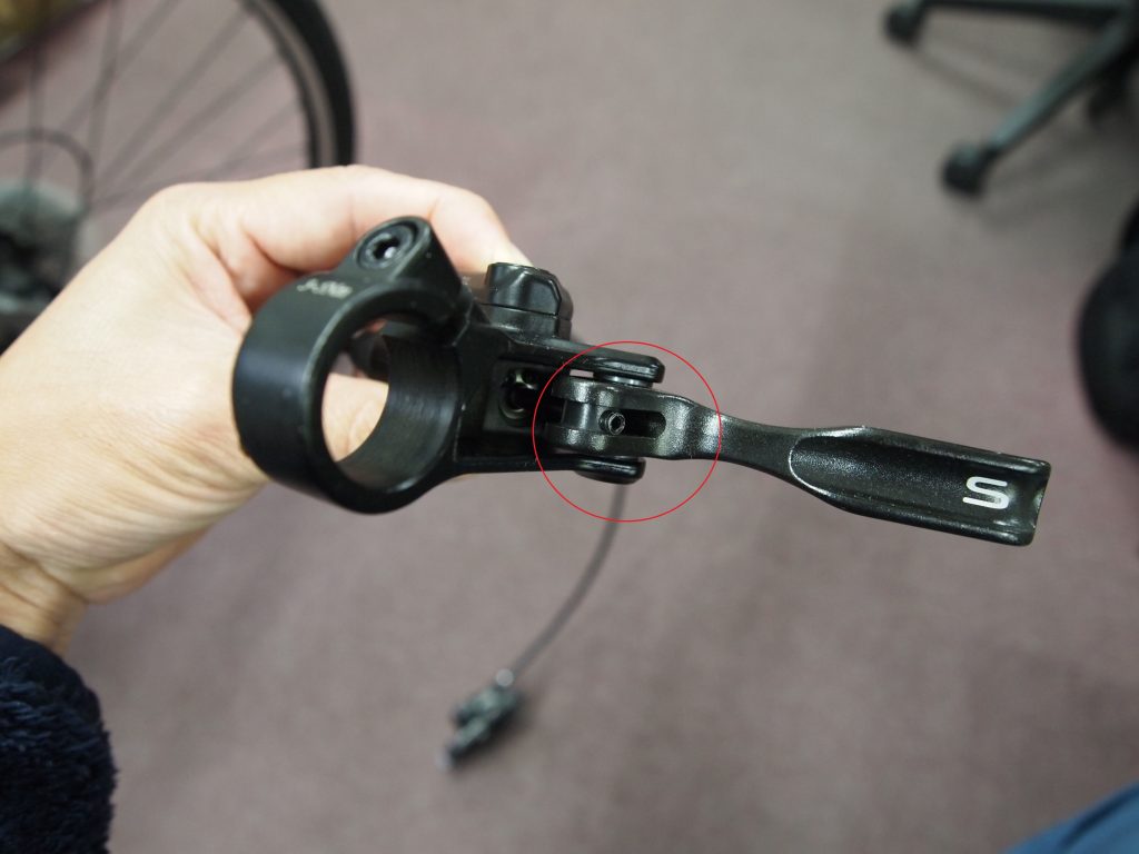 ボルトを緩めるとレバーがグリップから遠くなります。レバーが近すぎる場合はここを緩めて調整します。