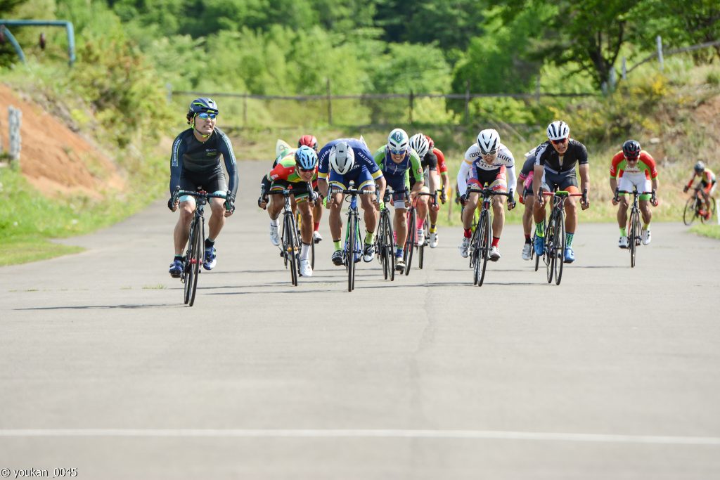 割と大きめの逃げが出来た周の登り返し、自分が集団に埋もれるタイミングでマサルが後ろからブリッジをかける。