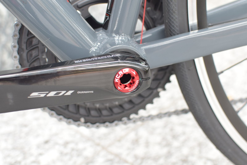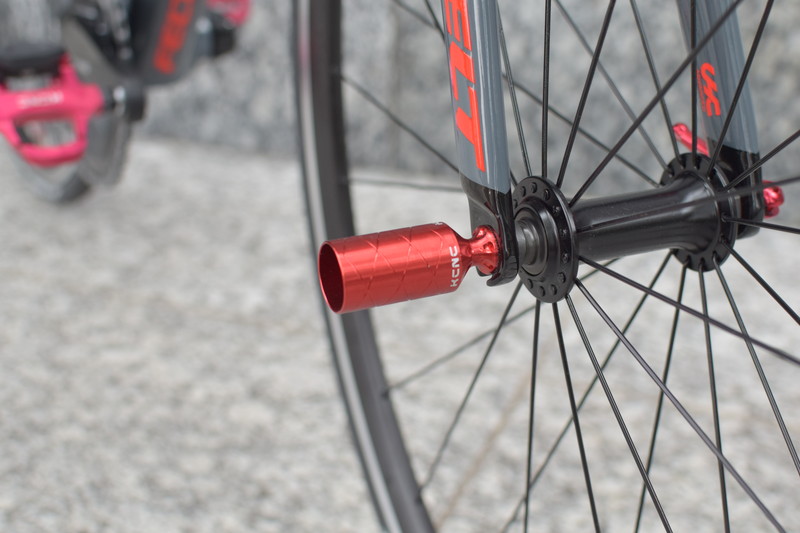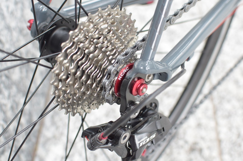 FR30に、KCNCの豊富なカラーラインアップの中から主にレッドのパーツを選択し、装着したものが今回の「FR30 KCNC コンプリートカスタム」です。頑丈なアルミフレームバイクにアルミ加工のパーツでドレスアップ。レース・ヒルクライムなどのサイクリングイベントにも、シティライドにも活用いただけるおしゃれさを目指して企画をいたしました。軽量パーツの採用により、標準状態の8.57kgから8.10kgへ軽量化しています。採用されたKCNCパーツの合計金額は146,820円(税別)です。