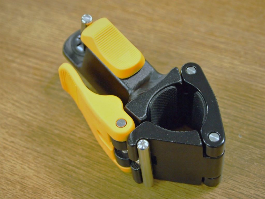 黄色いレバーがスライドして、取り付けた後はトラボーイが外れないように安全装置になっています。