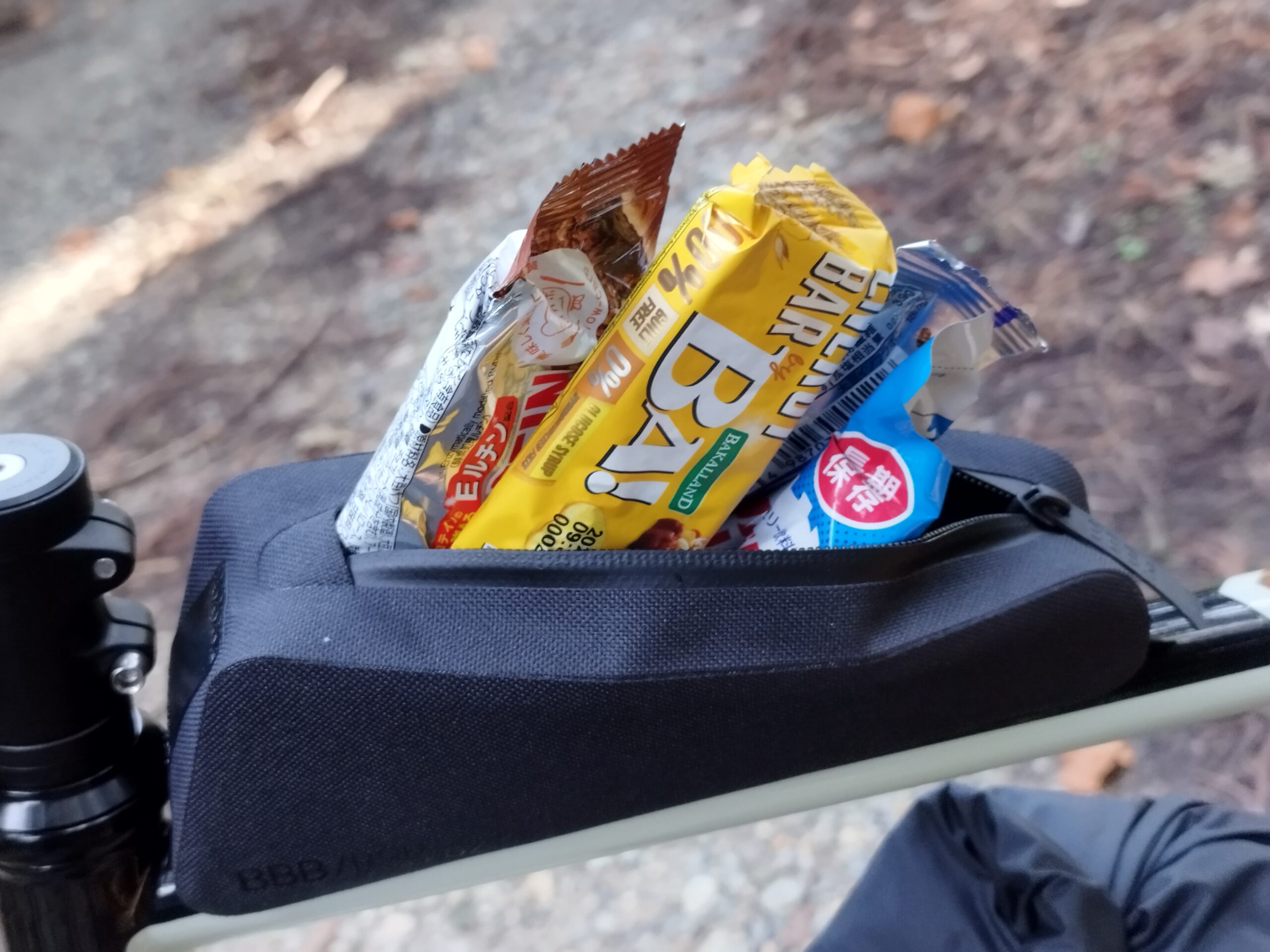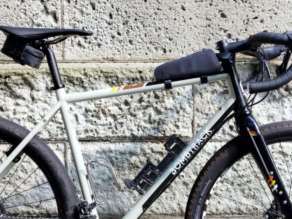 私の場合、トップチューブ側のベルクロを2本ではなく1本で使用しています。見た目重視ですが使用に問題はありません。