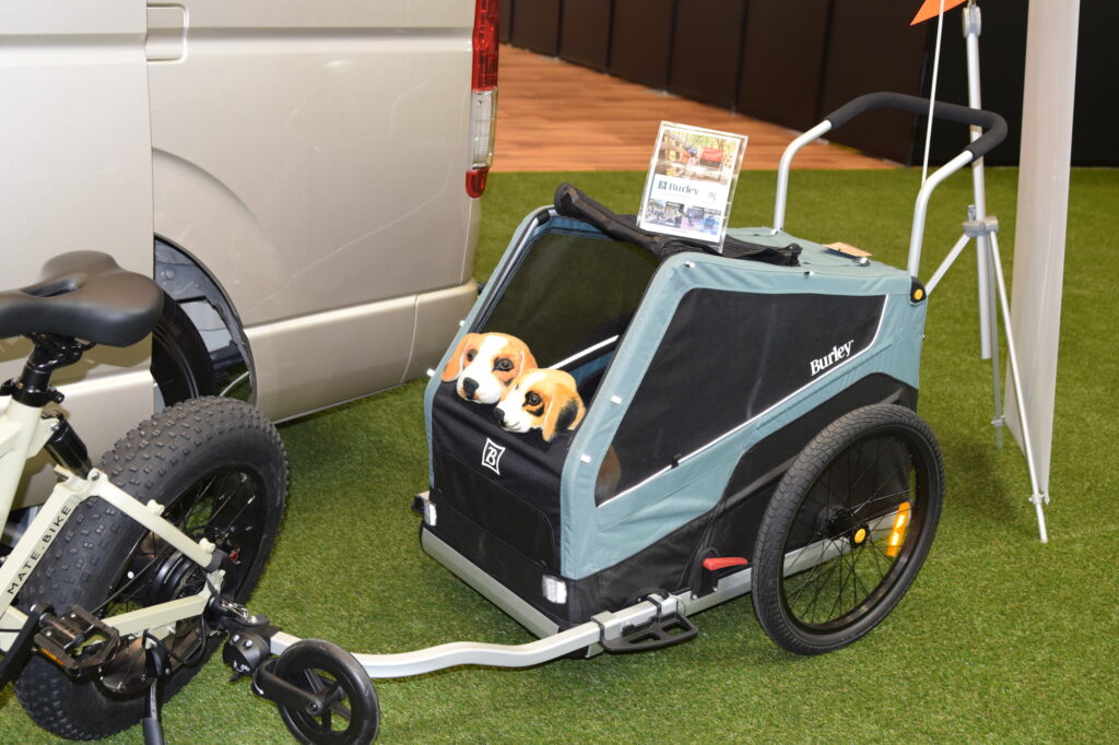 さらにペット旅を楽しむために、一緒にサイクリングできる「バーレー」のペットモデルも提案しようと思い、今回の展示になりました。