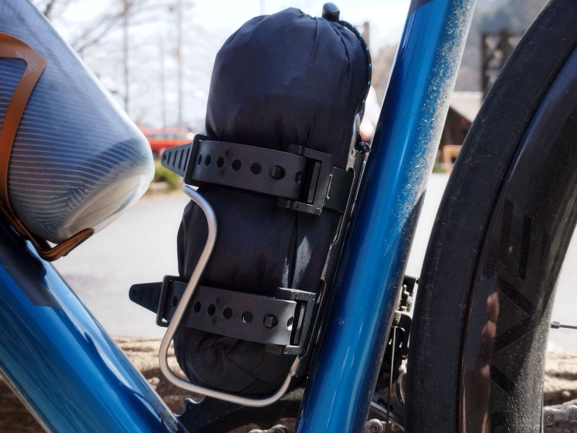 ポンチョは上から降ってくる雨には有効ですが、下からの飛沫には無防備です。BBBロードキャッチャーⅡのような簡易的なもので十分ですが、リアフェンダーの併用は必須です。弱い雨ならポンチョとリアフェンダーだけで十分ですが、本格的な雨の場合はレインパンツを履くことをおすすめします。フロントフェンダーも装着すれば完璧です。