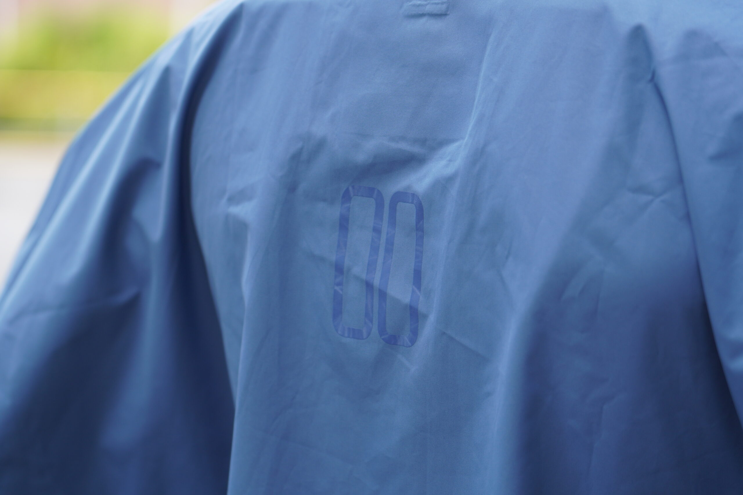 そもそもポンチョは構造的に濡れにも蒸れにも強いですが、耐水圧5,000mm、透湿性5,000g/㎡の防水透湿素材でさらに濡れ蒸れの対策がされています。表面には水を弾くDWRコーティング、内側に二層ラミネートがされています。非常にしなやかで快適に着用できる生地です。防水性に関するヨーロッパのEN343規格に準拠します。