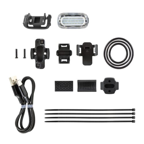 付属品:ライト本体 / ユニバーサルマウント(シリコンストラップ、ベルクロストラップ、調整ラバー) / VersaClip(クリップ式マウント)