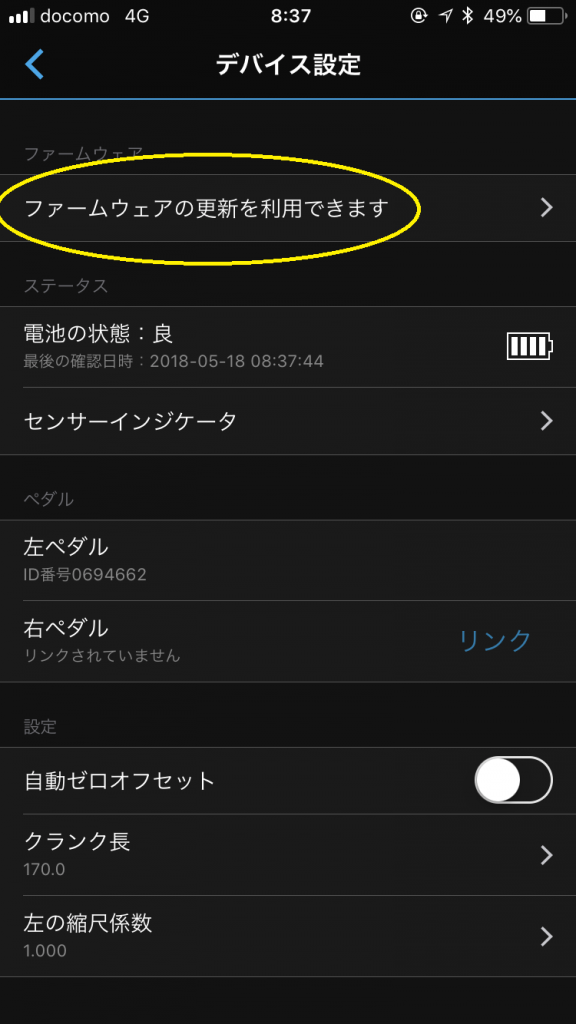 ※ちなみに、ここからバッテリーの電池残量やクランク長等の設定変更が出来ます。